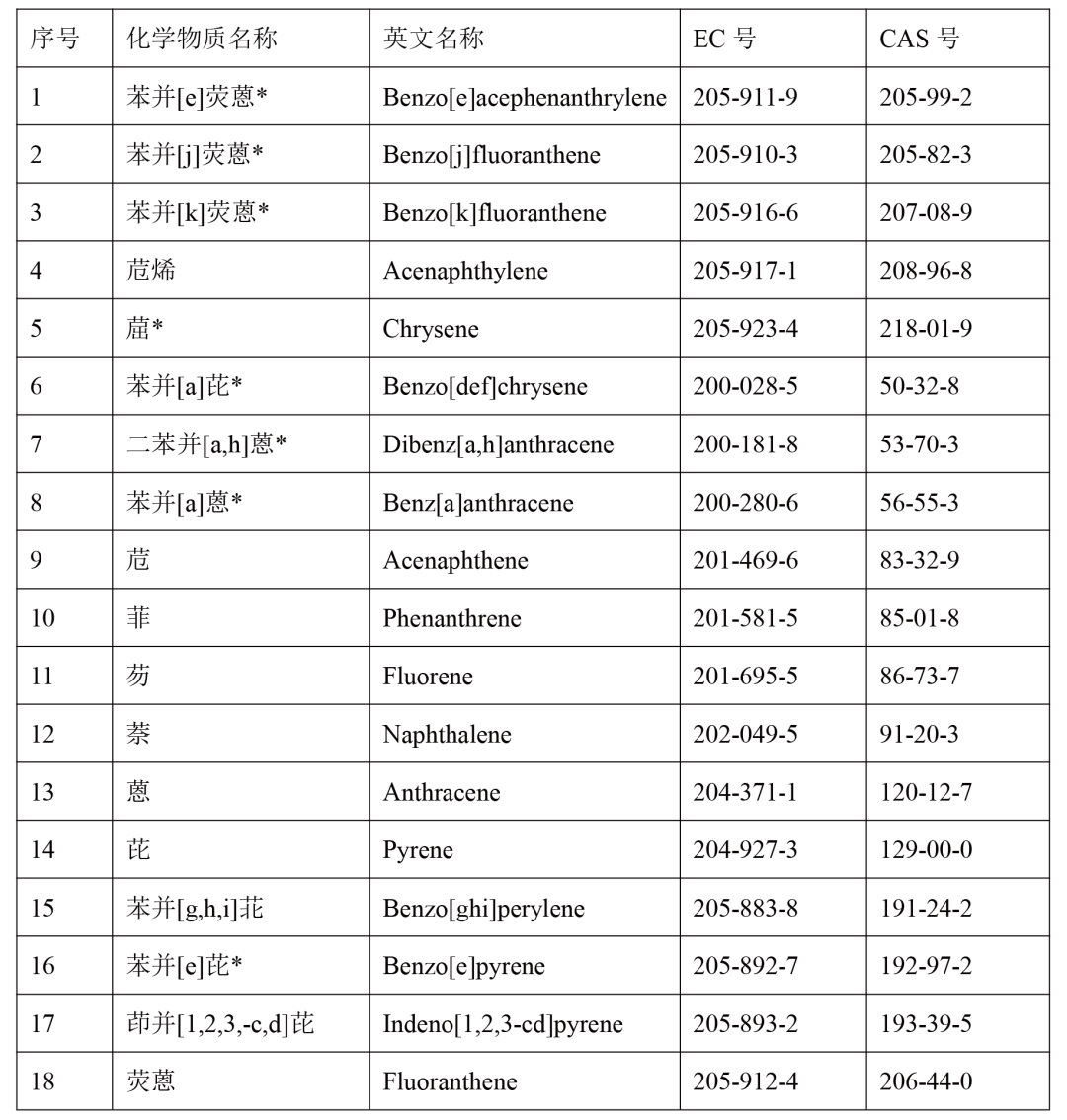 *該種多環芳烴在歐盟REACH法規的附件XVII中被管控限制,且新修限制剛于2022年8月10日生效。