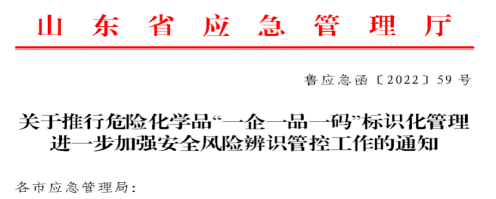 山東省為落實(shí)國(guó)務(wù)院安委會(huì)《全國(guó)方案》和山東省安委會(huì)《方案》,在今年8月開(kāi)始在全省推行危險(xiǎn)化學(xué)品“一企一品一碼標(biāo)識(shí)化管理工作。