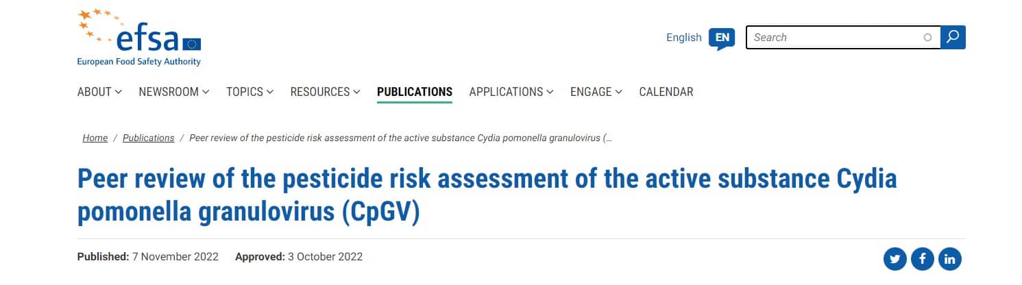 據(jù)歐盟食品安全局(EFSA)消息,2022年11月7日,歐盟食品安全局就活性物質(zhì)蘋果蠹蛾顆粒體病毒(Cydia pomonella granulovirus)(CpGV)的農(nóng)藥風(fēng)險(xiǎn)評(píng)估發(fā)布同行評(píng)審。
