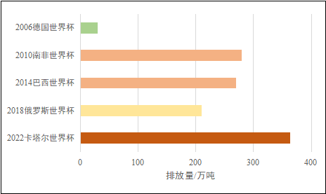 去年,國際足聯對外發布了《卡塔爾世界杯溫室氣體核算報告》。報告稱卡塔爾世界杯全過程(賽前、賽中、賽后)二氧化碳排放量363萬噸。這實際上是近五屆世界杯碳排放量最高的一屆。