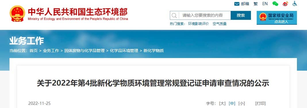 ▌2022年第4批擬批準的新化學物質環境管理常規登記證明細表