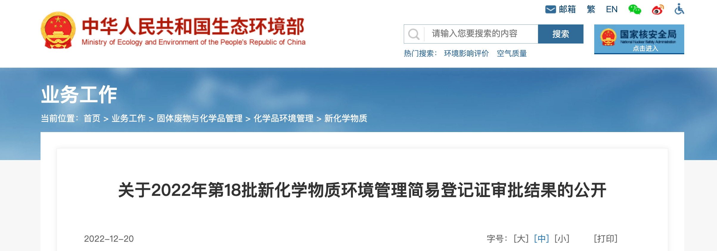 按照《中華人民共和國政府信息公開條例》(國務院令第711號)的要求,現將2022年第18批新化學物質環(huán)境管理簡易登記證審批結果予以公開。