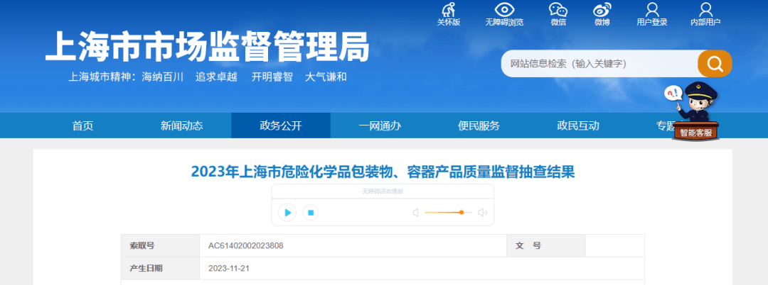 官方發布 | 2023年上海市危險化學品包裝物、容器產品質量監督抽查結果