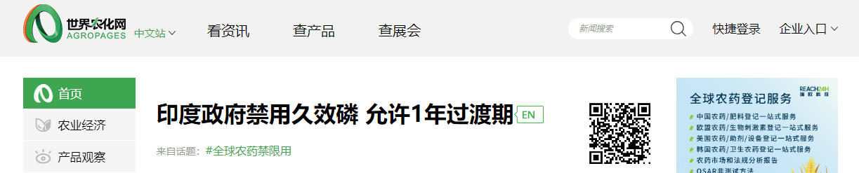 毒死蜱擬被列入《鹿特丹公約》附件三