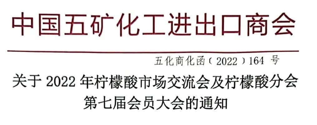 11月1日,由中國五礦化工進出口商會舉辦的2022年檸檬酸市場交流會及檸檬酸分會第七屆會員大會順利召開,來自全國17家檸檬酸企業的30多位企業代表線上參會,五礦商會錢景汾副會長出席會議并發言。