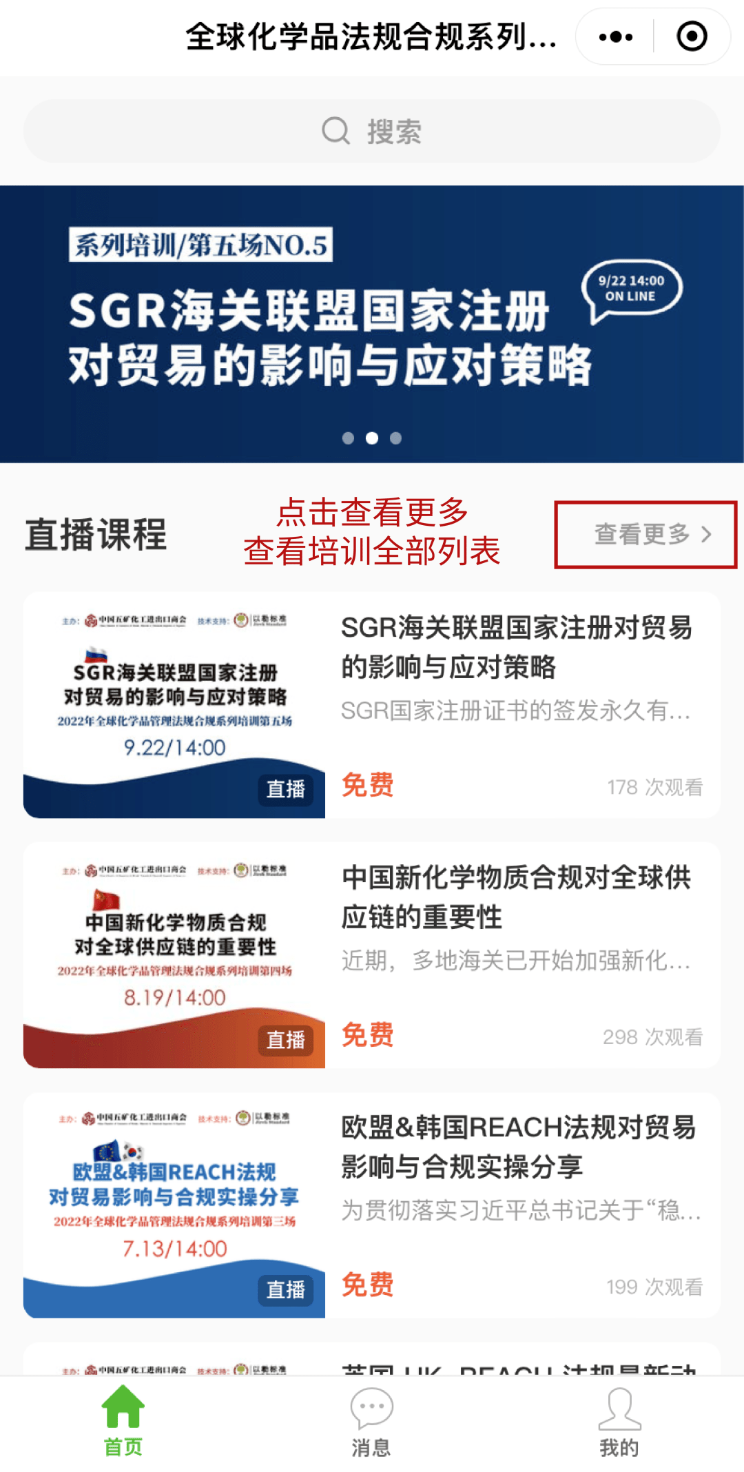 點擊查看更多,查看已有培訓全部列表
