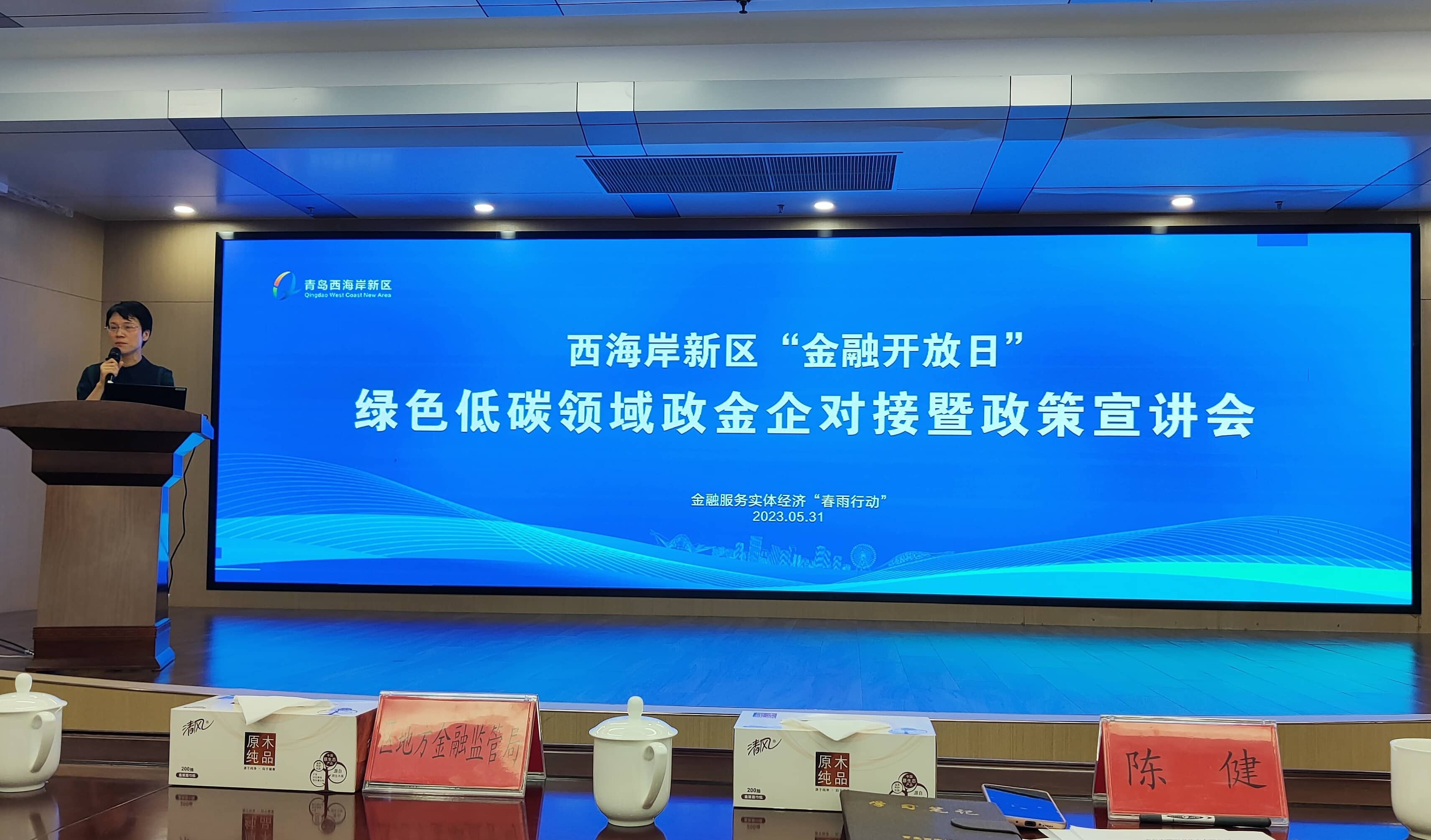 5月31日,公司董事長莊漢平博士受邀出席青島市西海岸新區綠色低碳領域政金企對接暨政策宣講會,并就碳達峰碳中和以及碳關稅碳壁壘等做主題演講。